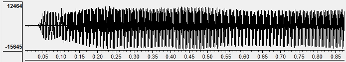波形としては最初に大きい波形が小さくなり、母音に突入といった感じです。